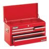 A great value professional quality step up three drawer tool chest for automotive and general workshop use incorporating special features designed to ensure long term service with security. Heavy gauge double wall steel construction with strong side lifting handles. One piece friction glide drawer runners for smooth operation. All drawers lock simultaneously when top lid is closed – secured by single tumbler style lock (2 keys). Full length aluminium drawer handles. Tough powder coat protective finish. Dimensions (WDH) 672 x 310 x 250mm.