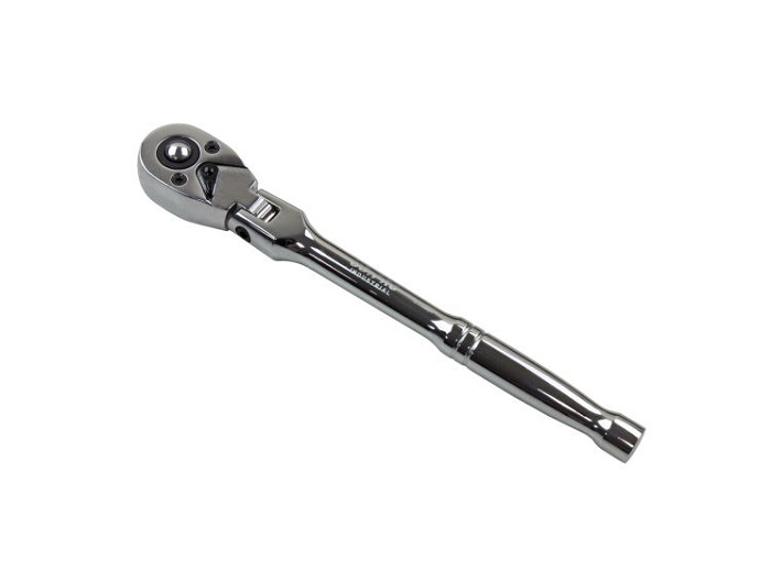 A 1/4″ drive ratchet handle with a flexible head and a straight handle. The ratchet has a reversible, 72 teeth drive mechanism made from strong CR-MO material. 1/4″ Drive. Flexible head for better positioning. 72 teeth drive mechanism. Drive made from strong Cr-Mo material. Body material is CR-V. Chrome plated with mirror finish. Straight Handle.