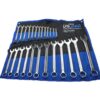 This quality set of US Pro Spanners has one standard ring at one end and gear ratchet ring at the other. Complete with drive adapters for sockets and bits. Sizes: 8, 10, 12, 13, 14, 15, 16, 17, 18, & 19mm. 1 – 1/4″ Dr Socket Adapter. 1 – 3/8″ Dr Socket Adapter. 1 – 1/2″ Dr Socket Adapter. 1 – 1/4″ Hex (F) x Bit Adapter. Lengths: 8mm x 237mm. 10mm x 292mm. 12mm x 327mm. 13mm x 347mm. 14mm x 367mm. 15mm x 374mm. 16mm x 390mm. 17mm x 407mm. 18mm x 412mm. 19mm x 420mm.