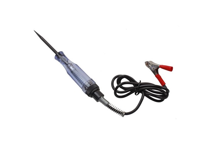 Ideal for testing fuses, light sockets and locating shorts and breaks. Sharp steel probe easily pierces wire insulation to check circuitry. Light glows in handle when a circuit is complete. Steel spring to protect ground wire. Range: 6 to 24V DC. Tool Length: 195mm (approx). Exposed Probe Length: 80mm (approx). Wire Length: 950mm (approx). CE Approved.